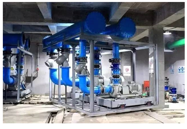 具體來說,為了保證安裝精度,項目通過活套法蘭校正泵組間安裝誤差,實現嚴密連接;現場人員對照裝配圖紙,通過掃描二維碼獲得各冷機立管相應信息,將其運輸至相應的冷機前方對管安裝;管道支架整體固定提升,通過特制插銷,連接支架與預埋在土建結構上的鋼板。