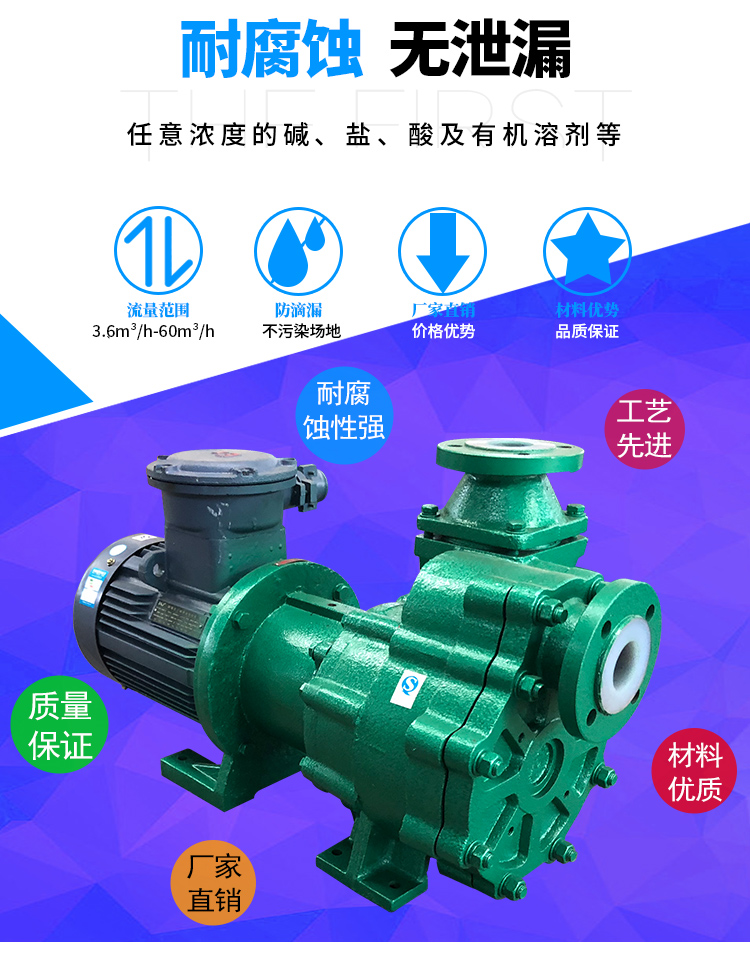 ZMD襯氟自吸磁力泵是我公司新一代耐腐蝕自吸磁力泵,它不但集氟塑料磁力泵的優(yōu)點(diǎn),而且具有自吸功能、無(wú)泄漏,這是以往的所有氟塑料磁力泵不能達(dá)到的,因此,該系列泵一推出就受到了廣大用戶的歡迎。該系列泵可廣泛適用于化工、有色金屬冶煉、農(nóng)藥、制酸制堿、造紙、酸洗工藝、稀土分離、電鍍、電子、化成箔、卸酸堿等行業(yè)或工作流程,是目前磁力泵品種中結(jié)構(gòu)新穎的產(chǎn)品之一,且高效節(jié)能、安全實(shí)用。