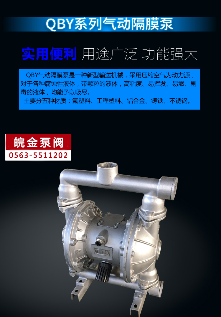 工作原理:QBY系列氣動隔膜泵是一種新型輸送機械,采用壓縮空氣為動力源。