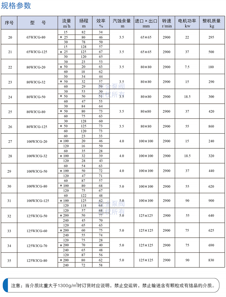 皖金泵閥不銹鋼磁力管道泵主要參數(shù):