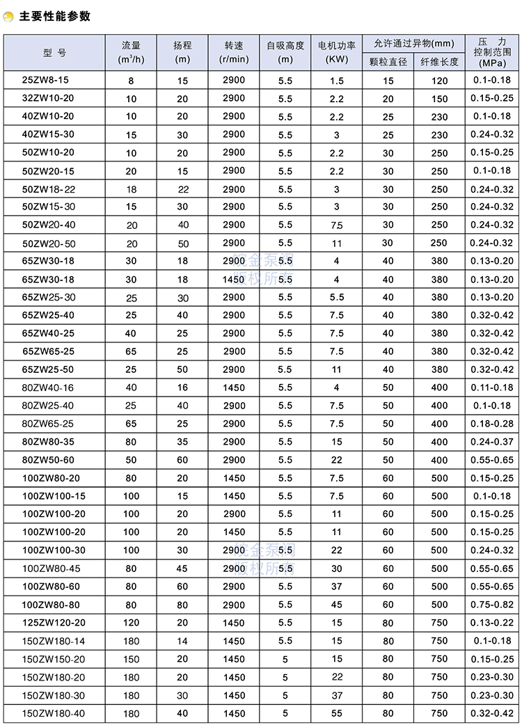 ZW自吸排污泵與國內同類產品相比,具有結構簡單,自吸性能好,(自吸高度可達5m),排污能力強,高效節能,維修方便(可替代WQ、QW潛污泵)等。